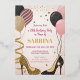 Entrez dans le style avec cette invitation chic à la fête du 28ème anniversaire ! Doté de talons hauts glamour aux accents de parties scintillant, de ballons élégants en rose, noir et or, et de détails d'étoiles scintillants, ce design rayonne sur le raffinement et la célébration. Parfait pour honorer un jalon spécial dans le style branché, il est entièrement personnalisable avec votre nom, date, lieu et informations RSVP. Faites de votre anniversaire un moment inoubliable avec cette invitation élégante et éblouissante !