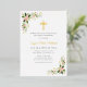 A modern gold foil cross floral design, first holy communion invitation card. The colors and text can be personalized.