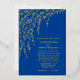Faire-part de mariage doré orné en bleu royal avec branches de saule doré et texte personnalisé. Personnalisez le texte du feuillet pour répondre à vos besoins mariages.