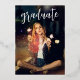 Cette invitation à la fête de remise de diplômes est parfaite pour un diplômé du lycée ou de l'université à la recherche d'un invitation élégant et moderne en écriture noir et or chic avec une photo complète sur le dos. Personnalisez votre photo avec tous les détails de la grande fête, classe d'info et ajouter un portrait de séance photo de diplôme préféré. Conçu par Simple Desert Designs Studios pour Zazzle. Message nous pour la personnalisation de ceci ou de l'un de nos designs pour répondre à vos besoins.