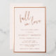 Invitation à l'huile de Fête des mariées floue. Simple et élégant, cette élégante invitation à la douche nuptiale "tomber en amour" présente une bordure classe et un élégant script de calligraphie pressé dans une véritable feuille d'or rose sur un brouillard | arrière - plan rose pâle.