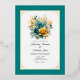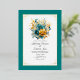 faire-part de mariage floral turquoise et doré personnalisable selon vos spécificités.