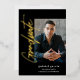 Célébrez votre diplômé avec cette invitation de remise de diplôme à motif feuille d'or avec écriture moderne noire, conçue en noir, avec une photo centrale, Diplômé en feuille d'or. Ajoutez les détails de la fête de remise de diplôme au verso de l'invitation. Cette invitation est parfaite pour un diplômé masculin comme votre fils, diplômé de l'université ou de l'université.