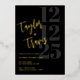 Célébrez votre amour avec style avec cette élégante invitation de mariage noire et dorée à motif de feuille métallique. Conçue avec une mise en page moderne et audacieuse, un lettrage doré brillant et un fond noir classique, cette invitation dégage de la sophistication et du glamour. Parfaite pour les couples qui veulent que leur papeterie fasse une impression durable, elle est idéale pour les mariages, les fêtes de fiançailles, les renouvellements de vœux et les célébrations haut de gamme.