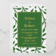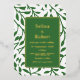 Cette invitation élégante en papier d'aluminium doré à motif de feuilles est chic, fraîche et parfaite pour les événements de printemps, d'été et d'automne. Le schéma de couleurs vert herbe naturel et blanc est personnalisable, ce qui vous permet de parfaitement assortir votre thème de couleur choisi.