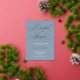 MYRA FOIL | Cette carte d'invitation à la douche nuptiale est conçue pour les mariages romantiques et/ou formels. L'arrière - plan bleu poussiéreux, la fabuleuse calligraphie de script en papier d'argent réel et le style formel du texte de copie combinés font de cette collection intemporelle un design parfait pour une papeterie mariage classique. Aussi un bon choix pour les mariages de contes de fées.