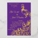 Véritable Huile D'Or Dorée. Ce faire-part de mariage possède un très grand paon en feuille d'or réel sur le côté de l'invitation sur arrière - plan royal violet avec texte dans une mise en page amusante et fraîche. Texte en feuille or. Sur le dos, même paon dans les couleurs violet et or avec de la place supplémentaire pour vous d'ajouter plus d'informations si désiré. Personnalisez cet élément en modifiant l'exemple de texte et en y ajoutant vos informations avec ce modèle. Image stock.