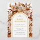 Invitation Élégante Baby shower Foil. Cette invitation à baby shower en feuille d'or authentique, élégante et rustique, présente une aquarelle peinte à la main, des feuilles orange brûlé et en terre cuite, des dahlias crème et beige, et de beaux roses de couleur rouille, parfaits pour un mariage automne ou automne ! L'arrière de l'invitation a un simple arrière - plan blanc avec un bouquet de coordination.