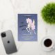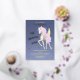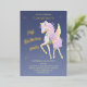 Carton d'invitation pour le 1er anniversaire avec une licorne délicate avec des ailes, des étoiles et des lettres en feuille d'or.