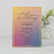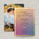 Elégant faire-part de mariage ombré avec de véritables accents de feuille d'or et un script manuscrit romantique. Le design avant présente un dégradé de coucher de soleil chaud en rose roux, lavande et bleu doux, associé à vos détails mariages en typographie chic. Retournez-le pour révéler une photo entièrement personnalisée - parfait pour présenter votre photo fiançailles ou un cliché de couple préféré. Un choix élégant et moderne pour les mariages contemporains, les événements de destination ou les élégantes cérémonies du soir.