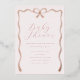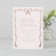 Une belle et formelle invitation baby shower avec des éléments en feuille d'or rose d'un ruban et d'un arc. Parfait pour un baby shower classique avec une touche moderne et tendance. Les détails de feuille d'or floue créent une jolie bordure en ruban de style vintage.