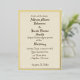 Ce design est présenté sur l'arrière - plan en coquille d'oeuf (F0EAD6) qui peut être changé à n'importe quelle couleur que vous préférez. Le texte est en brun foncé - la police, la couleur de police et la taille peuvent également être changés pour convenir. L'invitation est bordée par un cadre composé de deux lignes de feuille d'or. D'autres couleurs de feuille sont également disponibles. Des lignes épurées simples mais toujours élégantes.