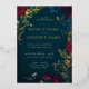 Si vous cherchez une faire-part de mariage qui fera le bonheur de vos invités, ne cherchez pas plus loin que ce faire-part de mariage floral époustouflant aux riches couleurs bijoux rouge, turquoise et or. Cette invitation est un chef-d'oeuvre du design, avec des accents de feuille d'or qui ajoutent une touche d'éclat et d'élégance aux belles compositions florales. Vous pouvez customiser cette invitation pour convenir à votre style personnel et à votre thème mariage, des polices et des couleurs au libellé et à la disposition. Cette invitation est parfaite pour tous les lieux mariages, que vous planifiez un mariage rustique, boho ou moderne. Ne manquez pas cette occasion de commander ce magnifique faire-part de mariage floral aujourd’hui et de vous préparer pour votre grand jour. **REMARQUE!** De l'écriture, seuls les noms de mariée et de mariée ont du papier d'aluminium, donc si vous changez la couleur du papier, vous pouvez aussi vouloir changer les couleurs des autres textes pour correspondre.