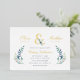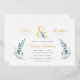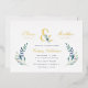 Invitations de mariage personnalisées et abordables personnalisées personnalisées avec les détails de votre événement. Cet élégant design présente une mousse d'or avec des flancs d'eau bleu et vert délicats sur un arrière - plan blanc. Utilisez les outils de conception pour customiser le texte, modifier les polices et les couleurs ou ajouter vos propres photos pour créer un faire-part de mariage élégant et élégant.