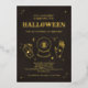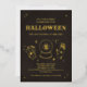 Cette invitation à la fête d'Halloween présente une main de style Palmiste, une boule de cristal, des cartes de voyants, des lunes et des étoiles en feuille d'or sur un arrière - plan noir. Ce serait parfait pour quiconque organise une fête d'Halloween adulte ou un événement mariage thématique d'Halloween.