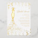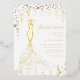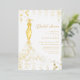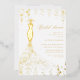 Jolies invitations à la douche nuptiale avec fond or et parties scintillant et script personnalisé avec parties scintillant en feuille réelle et robe nuptiale élégante. Choisissez entre deux couleurs arrière - plans et des éléments correspondants.