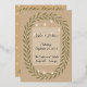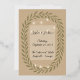 A charming rustic wedding invitation featuring a light kraft paper background with a subtle paper texture. A hand-drawn olive branch garland frames the design, accented by delicate white string lights for a warm and romantic touch. At the center, a soft translucent white rectangle elegantly showcases the couple’s names in flowing calligraphy, along with the wedding date and location in a refined serif font. Perfect for outdoor, countryside, or rustic chic weddings, this design balances elegance and simplicity for an unforgettable celebration.
