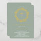Belles invitations de confirmation Gold Foil avec une délicate couronne florale et croix sur un arrière - plan vert sauge. Retournez notre invitation pour voir un retour de coordination pour une touche spéciale supplémentaire. Visitez notre boutique pour voir toute notre collection religieuse.