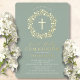 Belles invitations à la première communion Gold Foil avec une délicate couronne florale et croix sur un arrière - plan vert sauge clair. Retournez notre invitation pour voir un retour de coordination pour une touche spéciale supplémentaire. Visitez notre boutique pour voir toute notre collection religieuse.