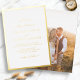 Invitation simple Mariage photo or Foil. Simple et élégante, cette belle faire-part de mariage est dotée d'une bordure classe et d'un élégant script de calligraphie pressé dans une véritable feuille d'or. Le dos comprend une photo horizontale pour la personnalisation.