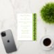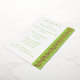 Apportez une touche de charme à votre événement avec ce faire-part de mariage avec une bordure pastel vert peridot sur le côté droit, décoré d'un motif de coeurs cachemire, dont chacun est entouré de pois et contient une vigne stylisée et imprimé en papier peint. Le côté gauche de la carte offre beaucoup d'espace pour tous les détails de votre événement spécial avec un exemple de texte en place qui peut être customisé pour répondre à vos besoins. Un grand coeur de paisley vert pastel finit les choses sur le dos pour créer une note finale mignonne. Cette invitation sera en accord avec tout autre produit Sweet Paisley Hearts in Peridot afin que vous puissiez facilement rendre votre événement aussi coordonné que vous le souhaitez.