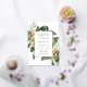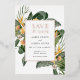 Foil pressé Mariage Enregistrer la Date pour une ambiance tropicale. L'établissement est doté de fleurs tropicales oranges et d'une végétation luxuriante. Inclure votre photo à l'arrière ou supprimer et laisser vide. Éditez avec votre libellé et choisissez parmi trois couleurs de feuille différentes, dont l'or, l'argent et l'or rose.