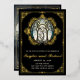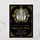 Invitation de mariage vintage avec des ornements en feuille d'or et des noms sur le côté avant. Vitraux Art nouveau avec ornements or. Arrière avec votre photo.