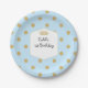 Assiettes de fête Prince Couronne Royale à pois bleus et dorés. Personnalisez avec n'importe quel texte. Des articles assortis sont disponibles.