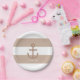 Assiettes marron taupe et blanc à rayures et ancre. Personnalisez avec le texte de votre choix. Les articles assortis sont disponibles.