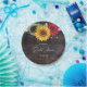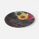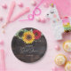 Tournesols rustiques sur assiettes de salle de mariage en bois de grange - se coordonne avec d'autres articles de la collection de salle de mariage. Les assiettes présentent de magnifiques tournesols vibrants sur du bois de grange avec des guirlandes lumineuses, le nom de la future mariée et la date de la salle de mariage.