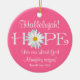 Cet ornement en céramique rose de Noël ou de Pâques a l'écriture sainte personnalisable du livre du 19:6 de révélations qui indique, "alléluia ! Pour nos règnes de seigneur un dieu tout-puissant !" Vous pouvez changer la couleur rose d'arrière - plan. L'espoir de mot est dans le blanc avec une tête blanche et jaune de flowere de marguerite de Shasta au lieu du "O". Vous pouvez montrer votre foi chrétienne forte sur votre arbre de Noël, ou accrochez-le n'importe où pendant votre année à la maison ronde. Elle ferait également un cadeau gentil de Noël pour un ami ou un pasteur à l'église.