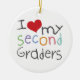 Cet ornement personnalisé fait un grand cadeau pour les deuxièmes professeurs de catégorie. L'avant me lit "coeur mes deuxièmes niveleuses" dans une police mignonne d'enfants. Le dos peut être personnalisé avec votre message et noms de vacances.