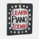"Learn Piano Today" est un design de texte mignon en gris avec du texte noir et rouge. Il est installé en forme d'accent blanc et de mignons pois blancs l'entourent.