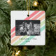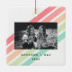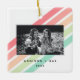 Offrez-vous ou ceux que vous aimez avec ce ornement moderne et personnalisé avec une ambiance rétro. En blanc, rose, orange, vert et bleu. Noms, année et photo sont personnalisables. Une partie d'une collection de Parcel Studios.