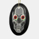 Un crâne d'argent mal regardant avec des globes oculaires rouges imaginaire ornement personnalisé. Cliquez sur Personnaliser pour ajouter un message personnel au verso. Si vous avez besoin d'aide ou avez des demandes, veuillez me contacter. Je peux aussi ajouter l'image à l'arrière de l'ornement. Cette image est disponible sur de nombreux produits dans ma galerie.