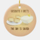 Un ornement avec une assiette de biscuits souriants et un heureux bol de grillades. Les mots "Biscuits et Grits le jour est sauvé!" font partie du design et peuvent être customisés.