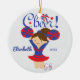 Bleu et ornement mignon de pom-pom girl de brune d'acclamation rouge. Facile à personnaliser avec votre nom et date. Visitez notre magasin pour regarder cet ornement dans une grande variété de couleurs d'école et de couleurs de cheveux