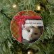 Ornement amusant et entièrement personnalisable avec chaud rouge et vert plaid sur l'avant et le dos et rouge satin arc et ruban cadrant votre photo spéciale!