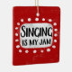 "Singing Is My Jam" est un design de texte amusant avec une forme d'accent blanc entourée de points blancs texturés.