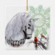 En Céramique Cheval de Noël & Cardinaux Ornement recto-verso