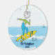 Notre ornement personnalisé et daté unique de Noël de surfer comporte le chiffre le plus mignon garçon de bâton de surfer réglé sur l'arrière - plan bleu de l'eau d'océan ! Personnalisez avec votre information et date et vous sont tous placent pour aller ! Cadeau daté merveilleux de souvenir pour votre arbre de Noël et une grande addition à vous collection d'ornement de Noël.