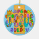 Christian Funky Jesus Ornament par ArtMuvz Illustration. Correspondant t-shirts chrétiens personnalisables, vêtements catholiques et cadeaux de prière. Pour personnaliser, ajoutez votre nom ou ajoutez du texte à la place. Customisez cet ornement chrétien pour le rendre unique à vous ou pour donner en cadeau personnalisé. Une excellente façon de montrer votre foi et de répandre l'amour de Dieu. Présente un message chrétien audacieux, montrez votre foi et diffusez l'amour de Dieu.