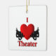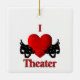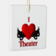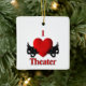 I Heart théâtre avec des masques de comédie et de tragédie de chaque côté du grand coeur rouge.