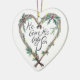 Cette décoration d'arbre de Noël montre le motif réel pour le message de Noël de saison. Elle montre qu'une guirlande de Noël avec les aiguilles etc. de houx et de pin et le droit à son centre est le message chrétien… "qu'il a donné son seulement fils" pris du vers célèbre "John 3 v 16" de bible ce qui est le texte imprimé du verso de cette décoration en forme de coeur.