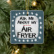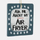 "Ask Me About My Air Fryer" est un design de texte amusant avec une forme d'accent blanc entourée de points texturés blancs.