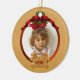 Personnalisez ce joyeux ornement photo pour enfants en pain d'épice pour un souvenir ou un cadeau unique. Ajoutez votre photo au recto et la date de personnaliser ci-dessous sur le panneau tenu par Gingerbread kids. Puis customisez le texte en retour avec votre salutation de vacances.