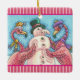 En Céramique Flamant rose ROSE SNOWMAN, NOËL ORNEMENT DE VACANC