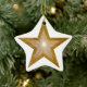 Design moderne avec un brillant or brillant et étoile blanche sur un arrière - plan blanc. Décor en forme d'étoile dans l'arbre de Noël avec un design personnalisable en or et blanc pour vous permettre de personnaliser avec votre propre texte, images et idées. Créé par Jess Perry à l'aide de photographies originales et de techniques numériques.