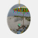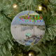 Cet ornement comporte la photographie. La scène est "la crique" dans Cape May, New Jersey. La neige a commencé à tomber sur les chaises et le parapluie de plage ! Notez le cadeau de Noël d'aqua sur la table de pique-nique !