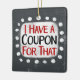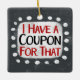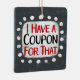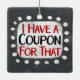 "I Have A Coupon For That" est un design de texte mignon en gris avec du texte en noir et rouge, avec une forme d'accent blanc et des points blancs texturés blancs qui l'entourent.